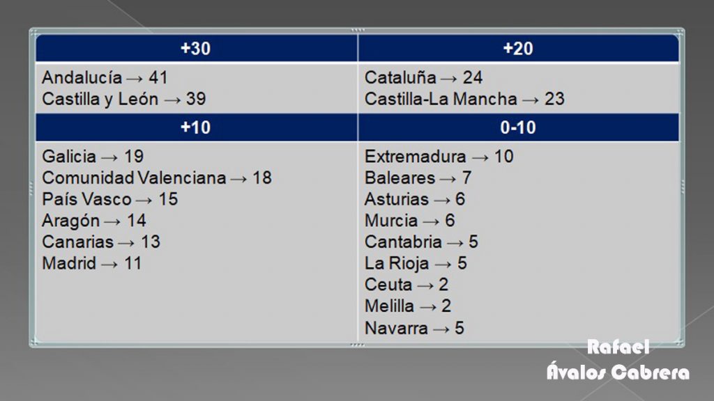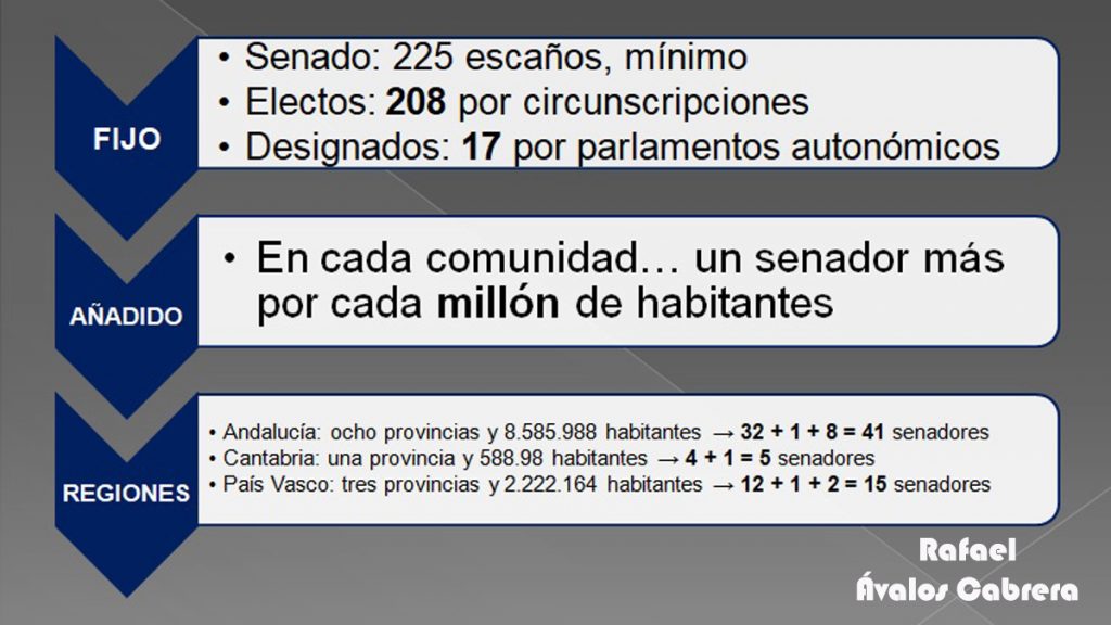 Con esos 208 establecidos siempre de igual manera, quedan al menos 17 miembros del Senado por asignar. Ahí entran en juegos las asambleas y los parlamentos de las distintas regiones españolas. Porque, por completar la información, esta cámara viene a tener un significado de representación autonómica. Son dos pasos los que se dan en la configuración definitiva: