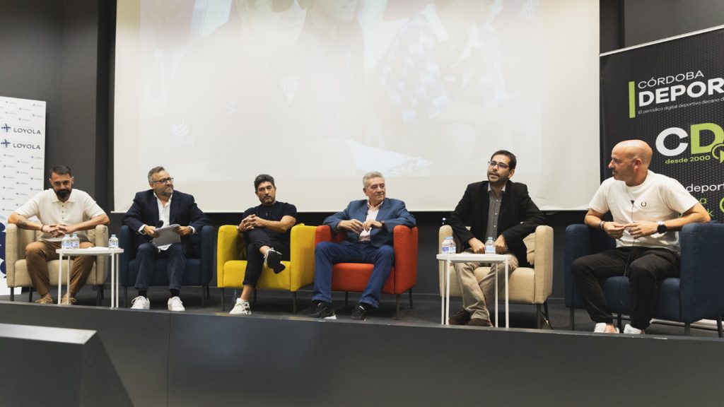 Meses después, en junio de 2024, presenté el tercer congreso de Cordobadeporte. En él se rememoraron los dos hitos principales del Córdoba Club de Fútbol en las últimas décadas. Con numerosos protagonistas recordamos sus ascensos a Segunda en 1999 y a Primera en 2014, de los que se cumplían 25 y 10 años respectivamente. El evento contó con la colaboración de la Universidad Loyola Andalucía, en cuyo salón de actos tuvo lugar. Me acompañaron en la moderación los periodistas Jesús Márquez y Antonio Postigo (Canal Sur Radio).